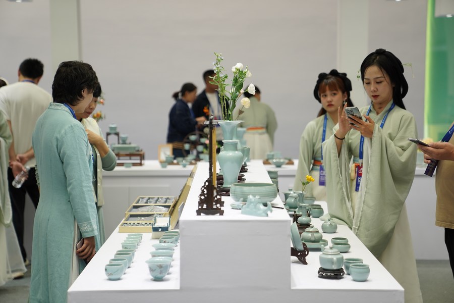 Visitors are seen at an exhibition area of the 2023 China Jingdezhen International Ceramic Expo in Jingdezhen City, east China’s Jiangxi Province, Oct. 18, 2023. (Photo/Xinhua)